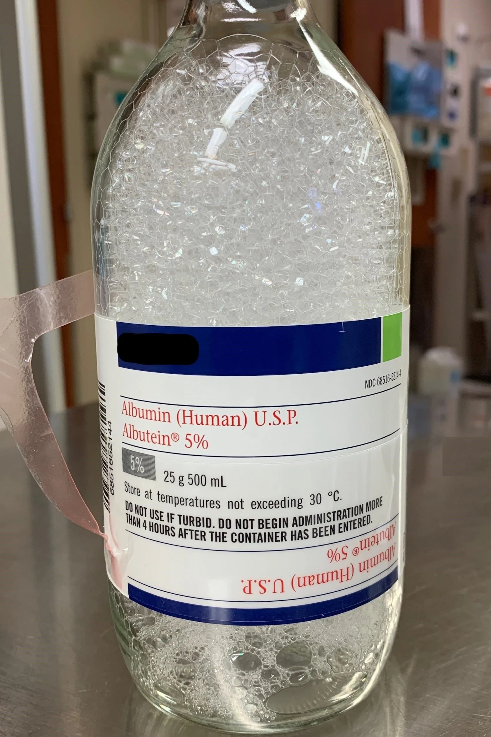 IVIG (and other plasma-derived medications) are made of human plasma. It’s a delicate protein and is susceptible to foaming when agitated. The current method of administration uses a vented IV tubing spike. This vented spike allows bubbles to travel through the medication which causes the medication to foam. (see photos above and video below)